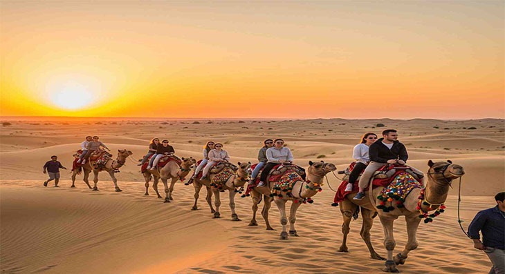 3. Go on a fun desert ride with camels and watch local shows on the sand dunes.